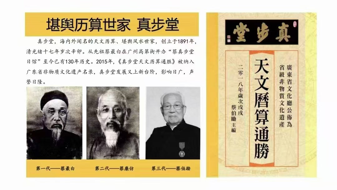 非遺技術:蔡氏所傳授的「真步堂天文曆算」已於2013年被列入廣東省非物質文化遺產名錄,是嶺南堪輿文化的重要代表。